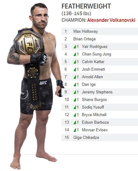 Забит, который располагался на третьей строчке прошлой версии рейтинга, покинул список топ-15 лучших бойцов, поскольку длительное время не дрался.