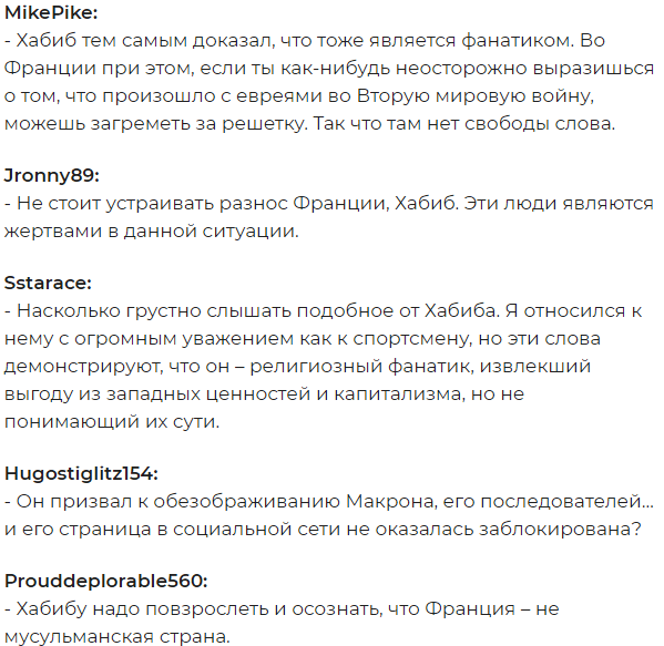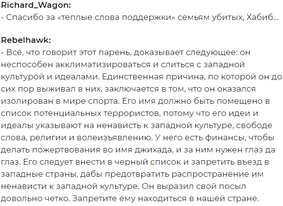 Американские поклонники ММА неоднозначно отреагировали на откровенный пост Хабиба, устроив настоящую дискуссию на страницах социальных сетей.
