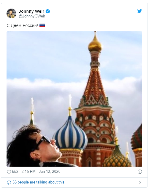 Трёхкратный чемпион США по фигурному катанию Джонни Вейр опубликовал пост, посвящённый Дню России, который традиционно отмечается 12-го июня