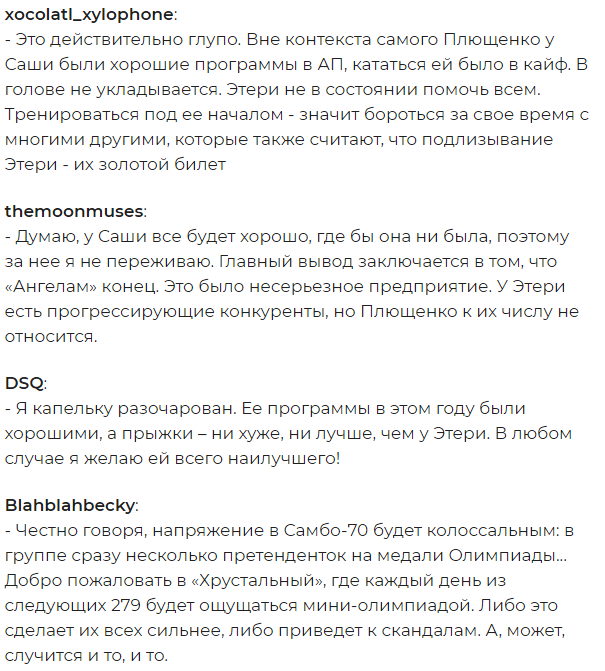 Сразу после данного объявления на страницах популярного форума Reddit англоязычные поклонники фигурного катания устроили жаркую дискуссию о решение Александры.