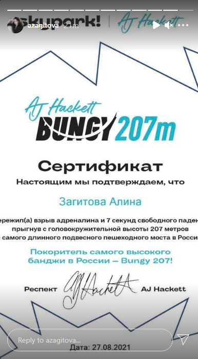 Сразу после прыжка Алина получила сертификат, подтверждающий, что Загитова таки решалась на экстремальное падение.