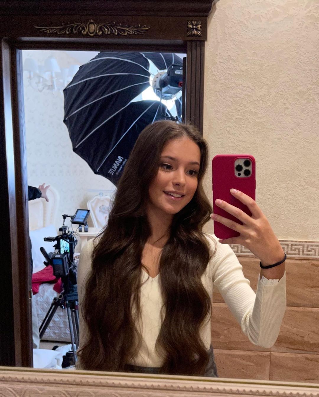 Спортсменка добавила очень красивые снимки, где она позирует с длинными распущенными волосами.