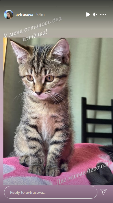 Фигуристка готова отдать двух котят в добрые руки, о чём она сообщила своим подписчикам.