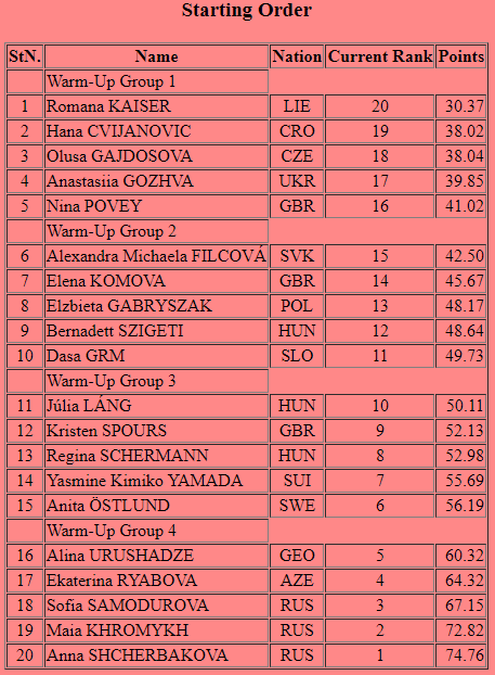 Отметим, что сегодня лидер соревнований Анна Щербакова уже успела обкатать свою ПП на тренировке. Увы, но хрустальная принцесса упала с четверного флипа, а также с тройного сальхова в каскаде с тройным лутцем через ойлер. Также не стоит забывать, что накнауне турнира в Венгрии у Анны обнаружили травму мышц шеи, из-за чего ей приходится выходить на лёд с медицинским пластырем на шее.