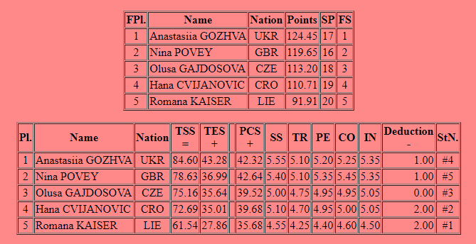 Праздник, пусть и временный, пришёл на улицу венгерских поклонников фигурного катания. Регина Шерманн получила 102.99 балла за произвольную программу, что в сумме превращается в вполне приличные 155.97 балла. Первое место на данный момент!