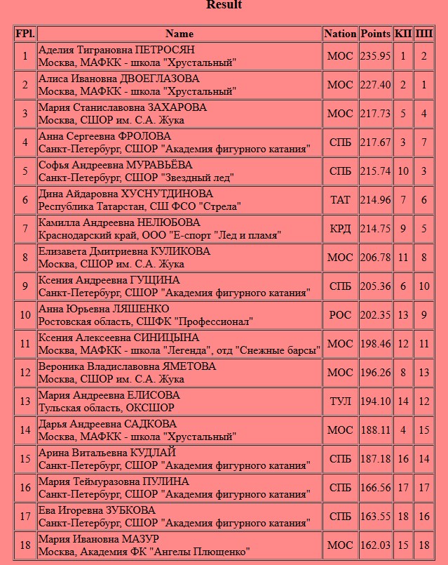 149.43 - оценка Петросян, 235.95 - общая. Аделия побеждает, но только благодаря короткой программе.
