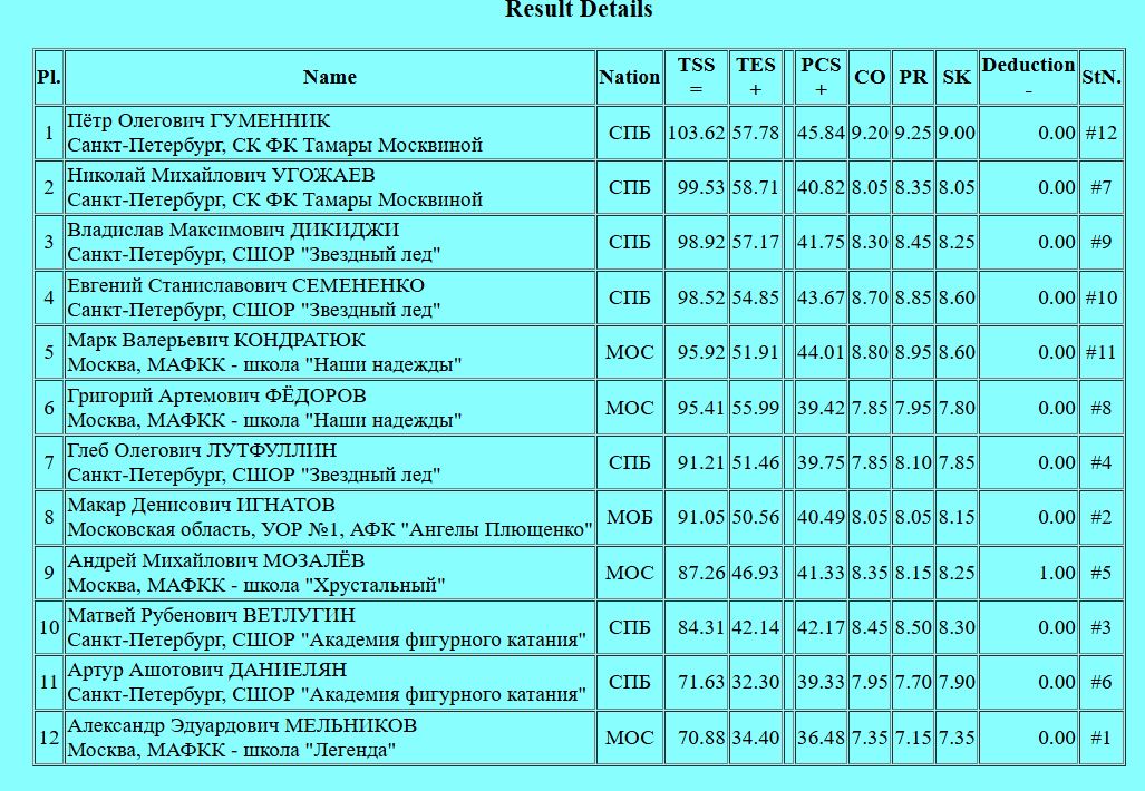Гуменник выигрывает короткую программу в финале Гран-при России, набрав более 100 баллов