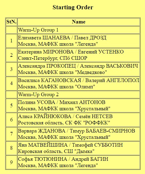 И далее на льды фавориты - Софья Тютюнина и Андрей Багин.