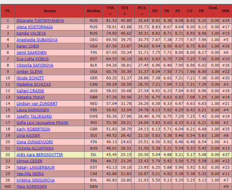 Итоговый протокол соревнований после короткой программы: