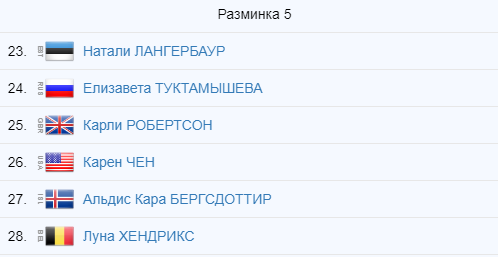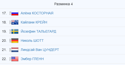 Американка Эмбер Гленн закрыла четвёртую разминку с результатом 60.76 балла. Впереди финальная группа и выступление Елизаветы Туктамышевой.