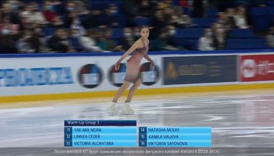 Пока Валиева разминается, свою короткую программу в Эспоо представила Яэ-Миа Нейра из Чили. 42.80 балла получила латиноамериканка.