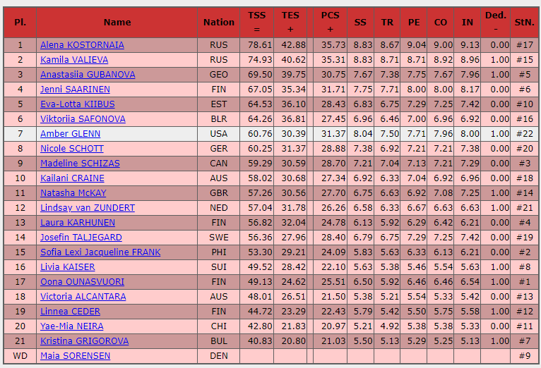 Шведская фигуристка Йозефин Тальегард явно стушевалась после яркого проката Косторной и выступила откровенно слабо. 56.36 балла получила скандинавка.