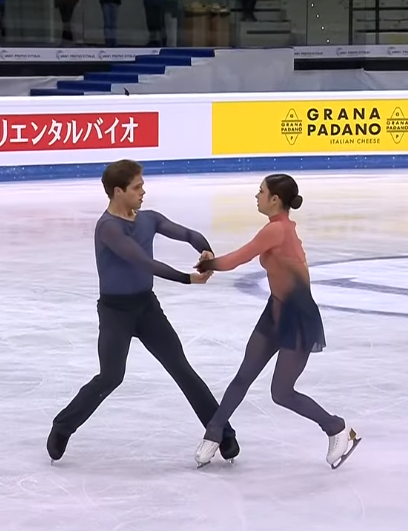 Американцы Кэролайн Грин и Майкл Парсонс представили свою программу на льду "Палавелы". Один из самых красивых прокатов на данный момент, но есть и проблема - синхронность движение была явно нарушена несколько раз. С поддержками проблем у пары не было.