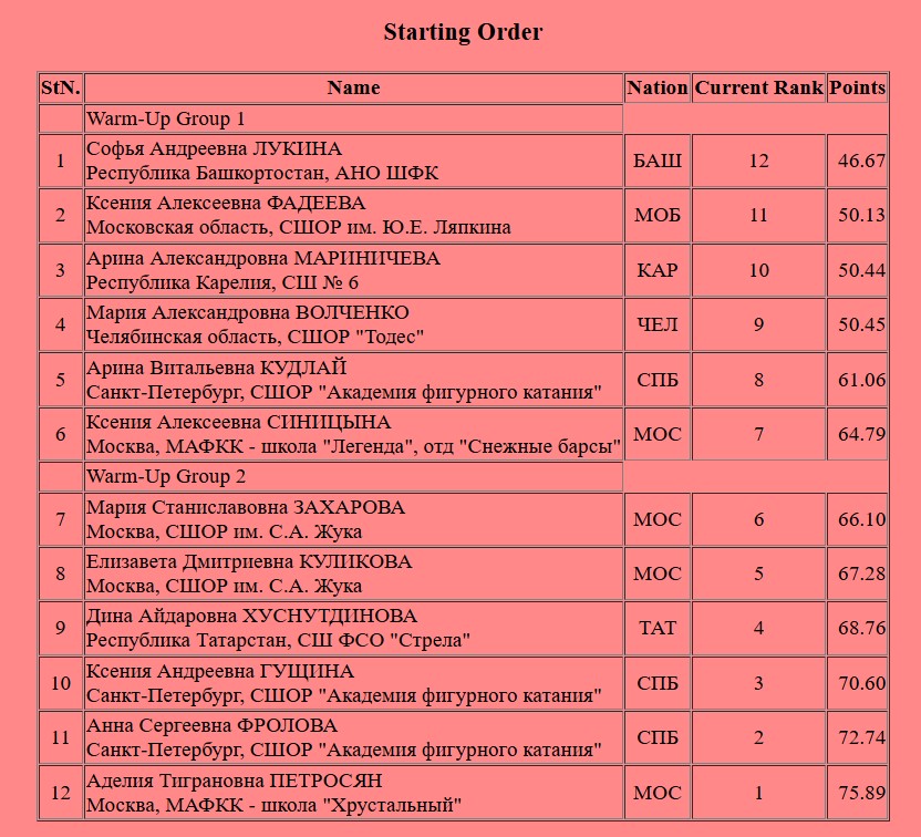 26 октября во второй день Гран-при в Магнитогорске женщины представят произвольную программу. Старт соревнований в 12:05 по московскому времени.