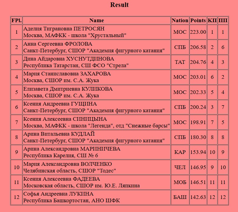 147.11 - оценка Петросян, 223.00 - общая. Петросян выигрывает Гран-при в Магнитогорске!