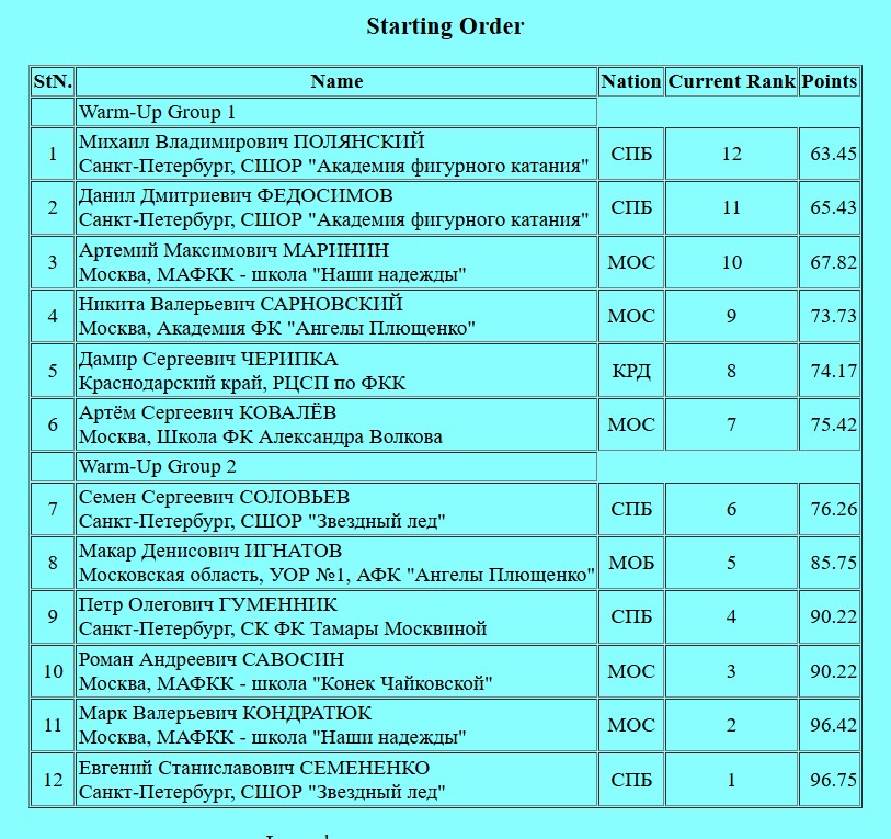 Сразу четверной флип. Далее ошибся Пётр на четверном лутце, а затем исполнил четверной риттбергер, каскад 4 сальхов + 3 тулуп, вращение в либеле 4 уровня и ошибся на четверном сальхове. Далее сделал 3 аксель + 2 аксель + 2 аксель и ошибся на тройном флипе. В конце сделал комбинированное вращение 4 уровня.