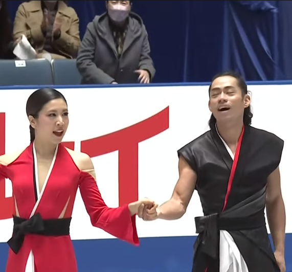 Любимцы местной публики Кана Мурамото и Дайсуке Такахаси открыли прокаты нежным и ярким танцем под национальные мотивы страны восходящего солнца. Любопытно, что для партнёра сегодняшний выход на лёд дебют в танцах – ранее Дайсуке выступал, как одиночник.