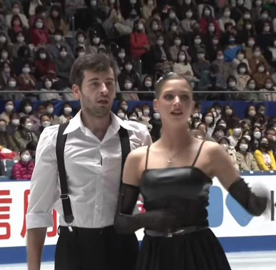 Канадские фигуристы Маржуа Лажуа и Захари Лага под динамичный танец Funkytown открыли вторую разминку. Классную современную хореографию показали североамериканцы в Токио. Да и с темпом проката тоже всё хорошо – завели публику канадцы.