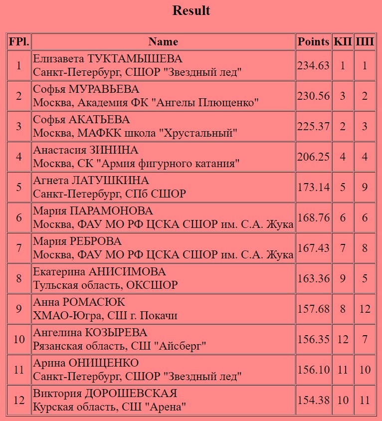Отличная программа от Туктамышевой и неудача Акатьевой наложились вместе и это победа! 150.58 - оценка, общая - 234.63.