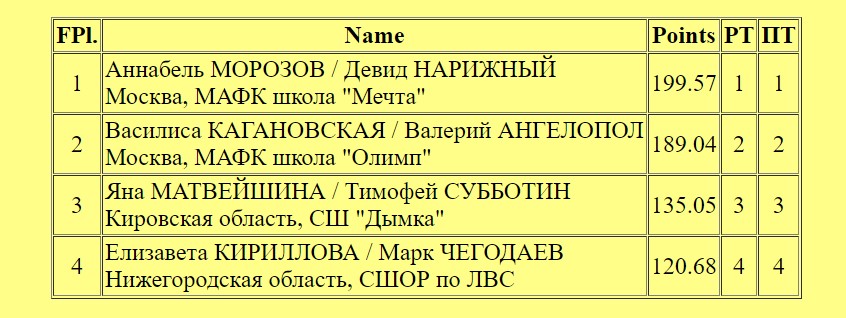 Получает пара Морозов/Нарижный 117.67 балла и общий результат - 199.57. Это победа на этапе Кубка России, поздравляем.
