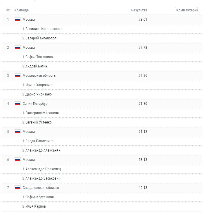 Софья и Андрей вырываются на текущее первое место! 77,73 балла!