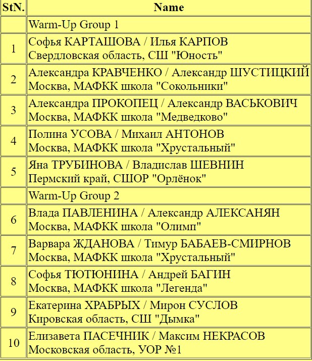 Влада Павленина и Александр Алексанян открывают вторую разминку.