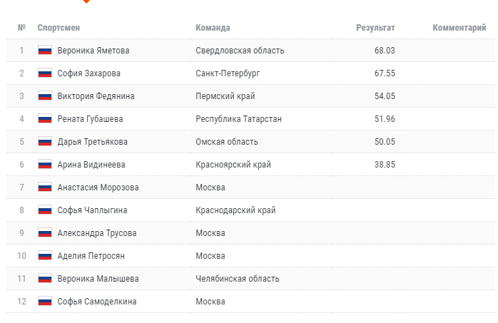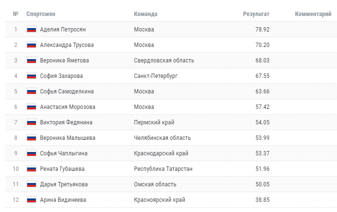И вот результаты короткой программы.