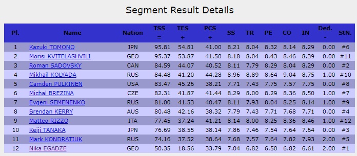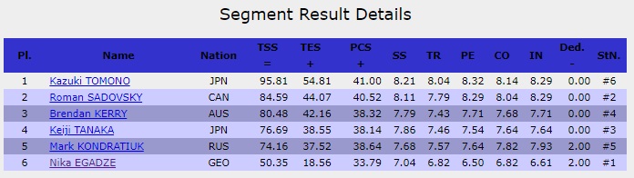 Поздравляем Казуки Томоно с победой после короткой программы в Сочи. Здорово сегодня откатал японец! Полностью итоговый протокол выглядит следующим образом:
