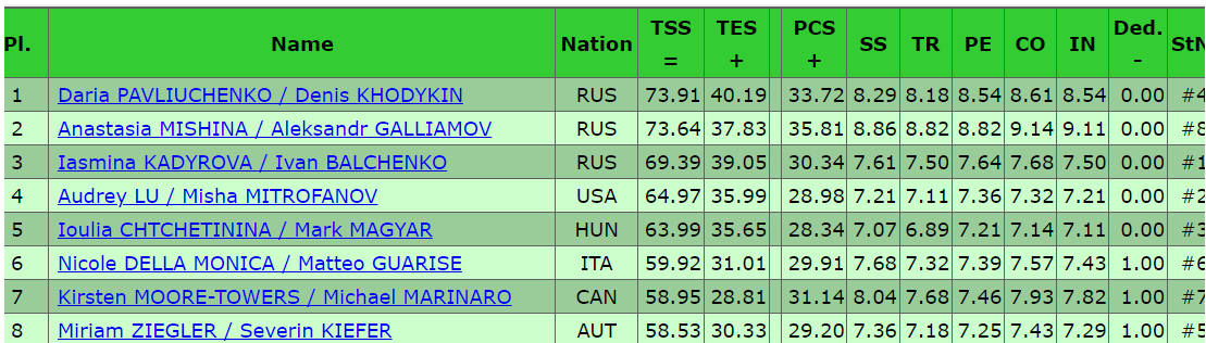 73,64 балла! Второй результат у российской пары. Немного проиграли они Павлюченко и Ходыкину.