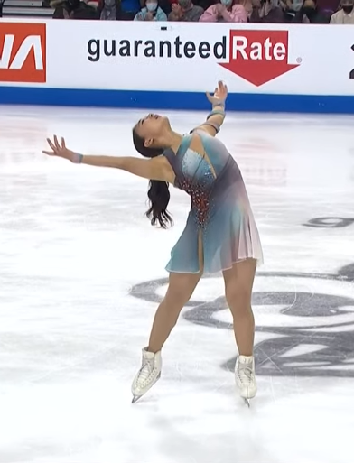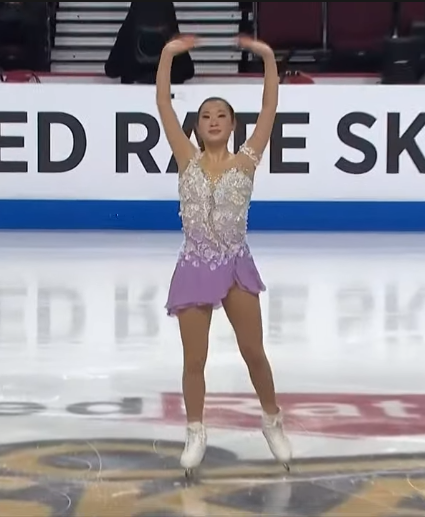 Элегантно и красиво, так можно описать прокат Ким Йе Лим их Южной Кореи. Единственное, что можно поставить в упрёк Ким, так это то, что она отказалась прыгать тройной аксель, хотя ранее на тренировках вполне успешна исполняла главный элемент короткой программы. На третье место выходит кореянка с результатом 70.56 балла.