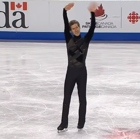 21-летний канадец Конрад получает 73.19 балла. Баллы явно занижены, однако тому есть причины - в каскаде из четверного и тройного тулупов допустил приземление на две ноги, а вращение было всего второго уровня сложности.