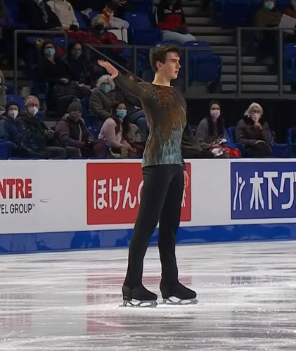 Увы, упал Семененко, выполняя четверной сальхов, из-за чего потерял несколько драгоценных баллов. Отметим классный касад 4 тулуп + 3 тулуп, а также вращения четвёртого уровня сложности. В целом, весьма приличное выступление от ученика Мишина.