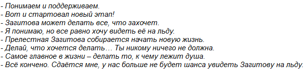 - Уважаю её решение. После очень успешной карьеры в фигурном катании Загитова вправе делать, что хочет, - написал один из китайских поклонников таланта российской фигуристки.