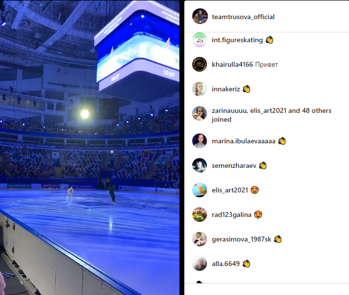 Команда Трусовой в Instagram ведёт прямой эфир прыжкового турнира в Москве. ВИДЕО
