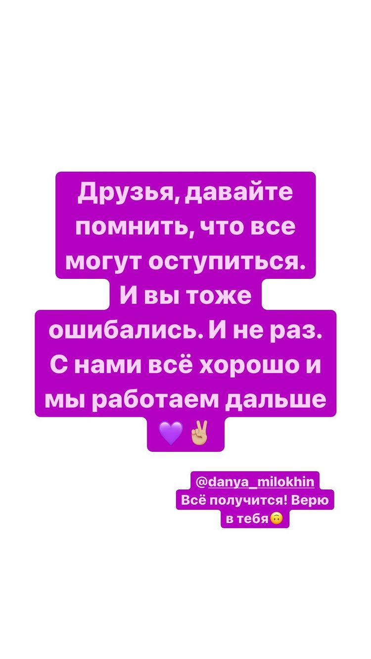 Также фигуристка попросила своих болельщиков не нападать на Даню Милохина, который не смог удержать фигуристка, исполняя поддержку.