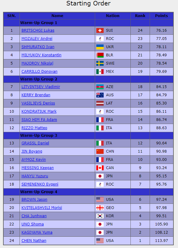 Sport.ru/ Фигурное катание. В четверг, 10-го февраля, пройдёт произвольная программа у мужчин на зимних Олимпийских играх в Пекине. Стали известны стартовые номера в произвольной программе.