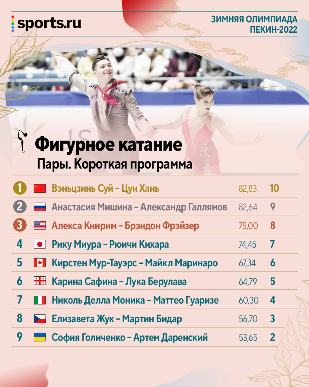 82,64 балла набирают Мишина и Галлямов! Второй результат у российской пары.