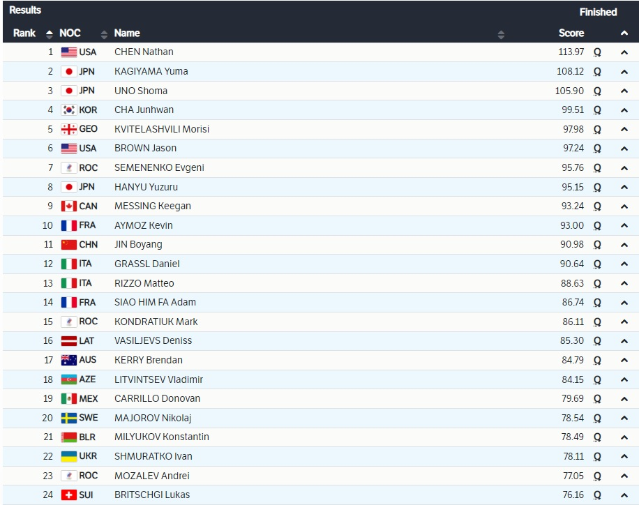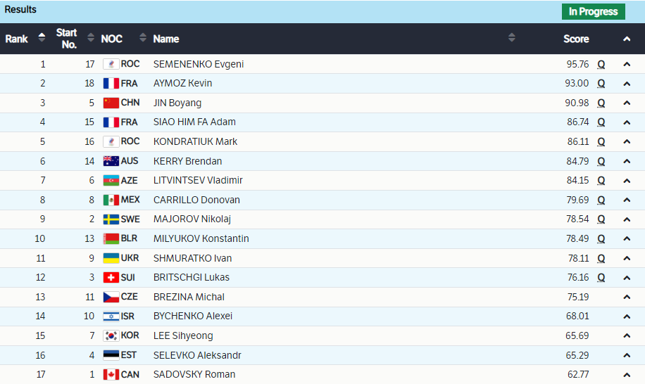 78,11 балла набирает Шмуратко. Это пятый результат, а швед Иван Майоров квалифицируется в произволку!