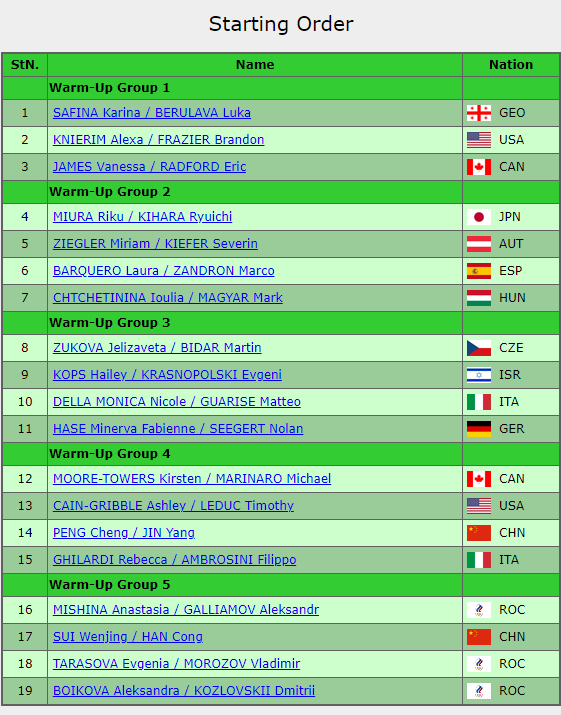 ОИ-2022. Обнародован стартовый номер Мишиной и Галлямова в короткой программе: полный список участников