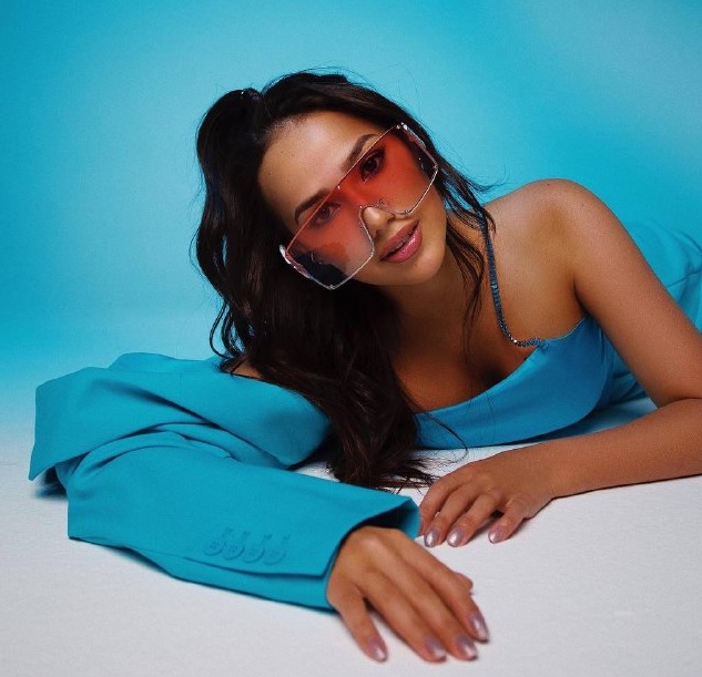 Спортсменка добавила снимки с фотосессии, где она позирует во всём синем. На одном из фото Загитова надела очки.