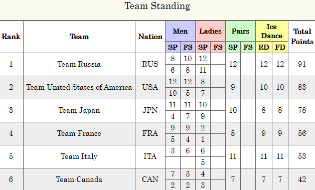 Россия продолжает лидировать в общем зачёте командного ЧМ по фигурному катанию