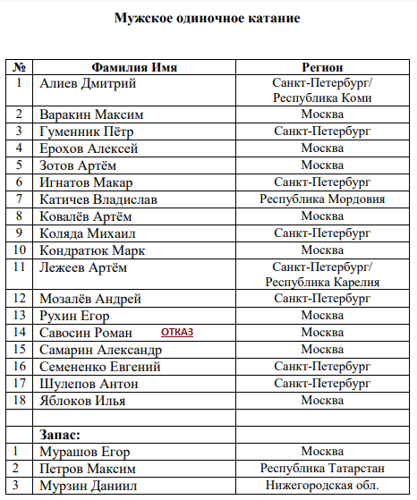 Савосин снялся с ЧР по фигурному катанию: состав участников за шесть дней до старта