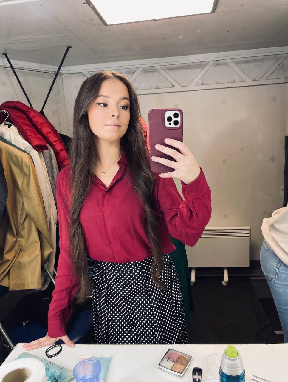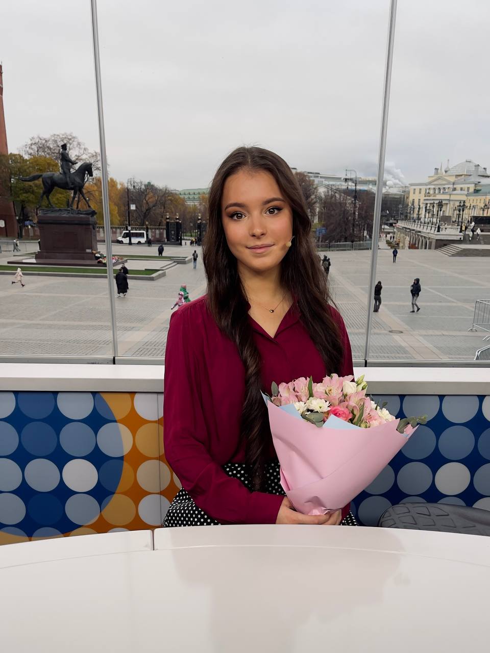 Российская фигуристка Анна Щербакова опубликовала фото со съёмок программы «Доброе утро» на Первом канале.