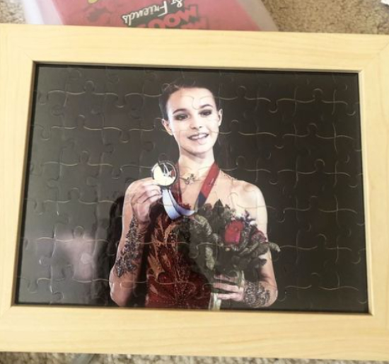 В числе подарков: рисунок, на котором изображена сама Щербакова, чехол на телефон со стразами, а также пазл с фотографией Щербаковой, на которой она держит золотую медаль.