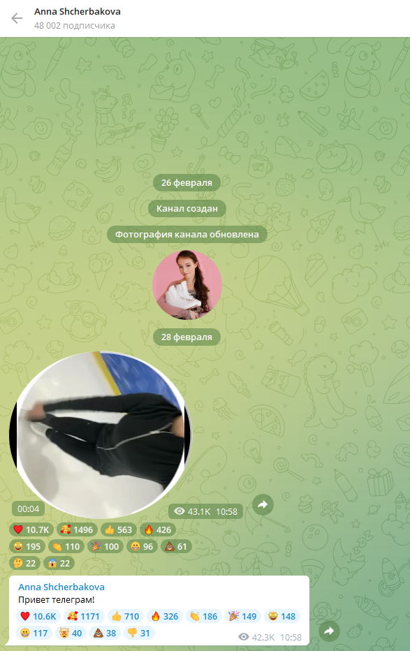 Щербакова сделала первые публикации в Telegram-канале. ВИДЕО