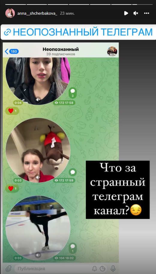 Помимо личных каналов Анна Щербакова, Дарья Усачёва и Алина Загитова создали общий. Они назвали его Неопознанный. Фигуристки размещают там различные короткие видео юмористического содержания.