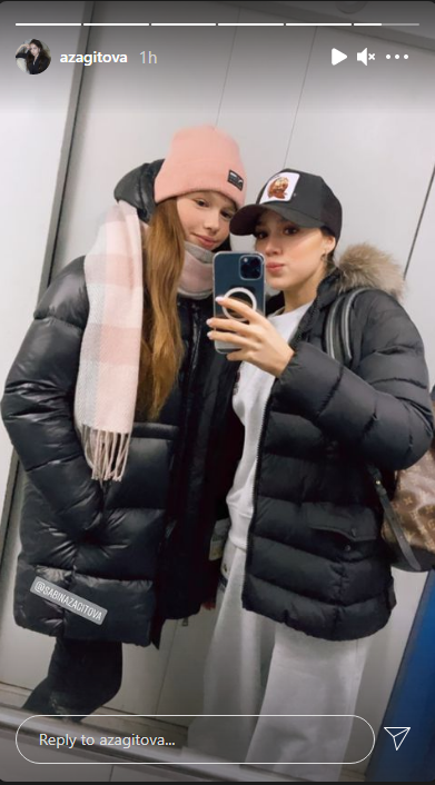 На этот раз 18-летняя фигуристка сделала селфи в лифте со своей младшей сестрой Сабиной.