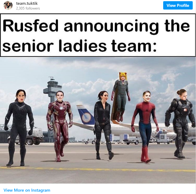 Во вторник, 19-го мая, figureskatingmemes в сторис опубликовал забавную фотографию, на которой участницы женской команды представлены в образе популярного комикса "Мстители".
