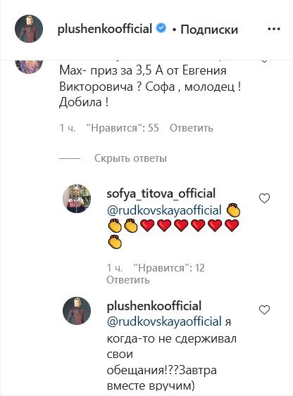 Евгений дал понять, что подарит Титовой 12-й айфон, как и было анонсировано ранее. "Я когда-то не сдерживал свои обещания?! Завтра вместе вручим", — ответил Плющенко своей жене.