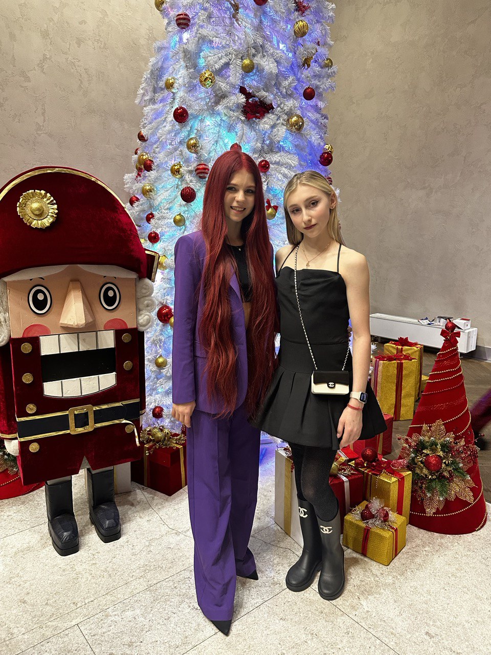 Трусова в сиреневом костюме вместе с Кондратюк на жеребьёвке ЧР. ФОТО